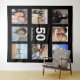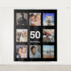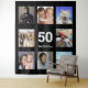 For a 50th (or any age) birthday, celebrating his life with a collage of 8 of your photos of his friends, family, interest or pets. Personalize and the age 50 and a date. Date of birth or the date of the birthday party. White letters. A classic black background colour. Use as party wall decor, welcome banner and as photo booth, photo backdrop.