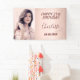 A banner celebrating a 21st (or any age)milestone birthday for a girl, woman. An elegant trendy rose gold, pink gradient background. Personalize and add your own photo of the birthday girl. The text: The name in dark burgundy with a modern hand lettered style script. Tempates for a name, age 21 and a date. Can be used as a party welcome sign, party wall decoration and as a keepsake.
