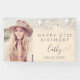 Celebrating a 21st (or any age) milestone birthday for a girl/woman. An elegant cream coloured background. Decorated with faux silver glitter dust. Personalize and add your own photo of the birthday girl. The text: The name in white with a modern hand lettered style script. Personalize and add a name, age 21 and a date. Can be used both as welcome banner or party wall decoration.