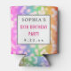 This girly modern typography rainbow bokeh can cooler makes a perfect favour and thank you gift for any birthday party! Personalize with the details of your choice.