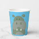 Birthday party fun hippo paper cup for the birthday table decoration. A cute decoration design for childrens party fun. The hippo would be great for a zoo theme party or if the child loves the hippo. The background is blue and the hippo in shades of green.