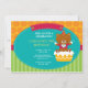 Start your birthday party off right with our super cute teddy bear and birthday cake invitation. Our Design features the cutest little teddy bear wearing a birthday hat on a frosted birthday cake set on a bright striped and dotted background. Available in styles in our shop. ©Stockberry Studio