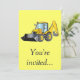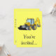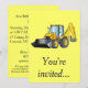 This birthday party invitation features a backhoe. For matching items type "penguincornerstore backhoe" into the Zazzle search bar.