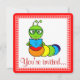 This customizable invite features a bookworm reading a book. Let us know if we can help you make up your invite!