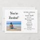 Make any birthday a fun occasion with this fun and flirty birthday photo invitation. Personalize it and send it out for your big celebration. The words "You're Invited" as well as the party details are in black typography. You can change the photo out with your own photo if you'd like. The text colours can be changed through the edit menu. The back of the invitation has a beautiful grey geometric pattern with circles.
