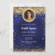 For an elegant 40th (or any age) birthday party. A navy blue, uneven coloured background. Decorated with faux gold confetti. Personalize and add a name and party details. Add your photo into the faux golden diamond frame. The name is written with a hand lettered style script