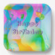 Birthday Party Neon Rainbow Abstract Paper Plate
