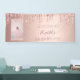 A banner for a girly and glamourous 16th (or any age) birthday party. A faux rose gold background with drips, paint drip look. Add your own photo of the birthday girl. The text: Welcome to, and a name written in dark rose gold with a large modern hand lettered style script.