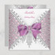 Birthday Party Pink Silver White Diamond Bow 2 Invitation