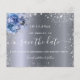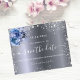 A girly and trendy Save the Date for a 50th (or any age) birthday party. A trerndy dark faux silver metallic looking background decorated with faux silver glitter dust and blue flowers. Personalize and add a date and name/age. The text: Save the Date is written with a large trendy hand lettered style script.