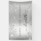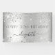 A banner for a girly and glamourous 30th (or any age) birthday party. A faux silver metallic looking background with faux silver glitter dust. The text: Personalize and add a name written in black with a modern hand lettered style script with swashes.