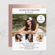 Create your own unique photo collage. Use four, 4 of your favourite photos. Personalize and add a name and party details. White background on the front, rose gold on the back.