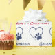Blue pet paw print with heart and Happy Birthday text on white background.