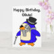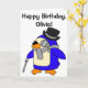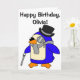 Cheerful, happy Birthday card of a Cute Baby Penguin in gray color, looking snazzy and posh!