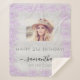 A gift for a girly and glamourous 21st (or any age) birthday. A faux silver metallic looking background with purple faux glitter dust. Personalize and add your own high quality photo of the birthday girl. The text: The name is written in black with a modern hand lettered style script with swashes.To keep the swashes only delete the sample name, leave the spaces or emoji's in front and after the name. Tempates for a name, age 21 and a date.
