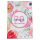 Summer and garden themed design, bohemian, boho style for a 70th birthday. Soft, feminine watercolored flowers in pink and peach colours with green leaves on a white background. A white and pink frame with templates for name, age 70 and date. (date of birth or date of the anniversary) Purple and pink letters. The name is written with a modern hand-lettered style script.