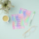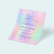 A girly and feminine 18th (or any age) birthday party invitation. On front: A rainbow, holographic coloured background in purple, pink, mint green, rose gold. Decorated with blush pink faux glitter, sparkles. Personalize and add a name and party details. The name is written with a hand lettered style script, purple coloured letters.