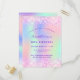 A girly and feminine 18th (or any age) birthday party invitation. On front: A rainbow, holographic coloured background in purple, pink, mint green. Decorated with blush pink confetti. Personalize and add a name and party details. The name is written with a hand lettered style script, purple coloured letters.