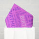 HAPPY BIRTHDAY HAPPY BIRTHDAY. There is no mistaking the message on this pretty pink tissue paper! The typographic design using the words HAPPY and BIRTHDAY in shades of pink and purple on a pink background, and you can personalize it with a name in light pink script.
