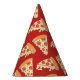 These festive paper party hats feature a repeating pattern or slices of pepperoni pizza dripping with cheese and are ready for your next pizza party.