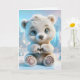 A cute polar bear cub with big, expressive eyes and paws in a heart position sits in a snowy landscape surrounded by sparkling ice crystals for a Niece.