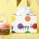 Colourful polka dot pattern on white background with Happy Birthday text.