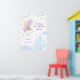 Birthday Poster with an adorable unicorn with wings, which is surrounded by cute pictures of a magical castle, clouds and festive bunting.