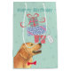 Happy birthday greetings with this cute design featuring a smiling Golden Retriever balancing a stack of birthday presents on its nose. Text can be easily changed; just click on customize button.
