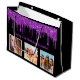 For a 50th (or any age) birthday. An elegant black background. With purple faux glitter drips, paint dripping look. Personalize and add 3 of your own photos, a date, name and age 50. Purple text. The name is written with a modern hand lettered style script.