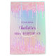 For a feminine and glamourous Sweet 16, 16th (or any age) birthday. A rainbow, unicorn holographic background in pink, purple, mint green with faux glitter drips, paint dripping look. Personalize and add a date, name and age 16. The name is written with a trendy hand lettered style script.