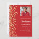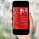 A modern, elegant and invitation. A red background decorated with faux gold confetti. Personalize and add photo, a name and party details. White text.
