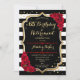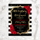 Birthday & Retirement Party Invitation. Elegant design in black, gold and red. Features black and white stripes, stylish script font, faux glitter gold and confetti. Perfect for a glam birthday & retirement joint celebration. Customize with your own details.