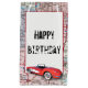 Red and white old Buick automobile on road atlas of United States for birthday.