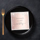 The cocktail napkins are exactly what I was looking for. The paper is smooth and untextured so there is no element challenging the logo placement. The print color came out perfectly. I was happy to get these and they arrived on time. Friday they will star in a Sweets & Bubbles reception for my art show opening. Perfect printing. The color is vivid and I'm glad I was able to position the logo anywhere I wanted to.