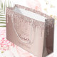 A gift bag for a girly and glamourous 21st (or any age) birthday. A rose gold background, drips, paint drip look. The text: The name is written in dark rose gold with a modern hand lettered style script. Tempate for a date and age 21.