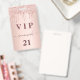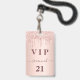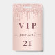 A modern, stylish and glamorous badge for a 21st (or any age) birthday party. A rose gold background with drips, paint drip look. The name is written with a modern dark rose gold colored hand lettered style script with swashes. With the text: VIP Number 21 is written in a golden color. To keep the swashes only delete the sample name, leave the spaces or emoji's in front and after the name.