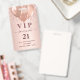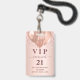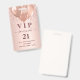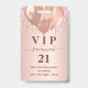 A modern, stylish and glamourous badge for a 21st (or any age) birthday party. A rose gold gradient background with faux glitter drips, paint dripping look. With the text: VIP. Personalize and add name, age, address/date. The name is written with a modern dark rose gold coloured hand lettered style script with swashes.