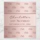 For a glamourous 21st (or any age) birthday party. A faux rose gold metallic looking background. Personalize and add your monogram letters, your name, age 21 and a date. Dark rose gold text. The name is written with a modern hand lettered style script. The monogram as a background pattern