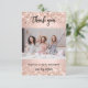 A birthday Thank You photo card. A rose gold background decorated with faux glitter, sparkles. Personalize and add your photo and thank you note.
