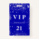 Birthday royal blue silver glitter vip invitation badge