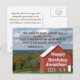 Personalized Birthday postcard depicts a big red barn and pond overlooking a beautiful scenic landscape. Make it special by personalizing the card with the name of the birthday boy or girl on the side of the barn, or the name can be deleted. The card features bible verse, Jeremiah 29:11, and the greeting/prayer on the back can be modified.~