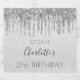 For a girly and glamourous 21st (or any age) birthday party with the girls. A faux silver metallic looking background with faux glitter drips, paint dripping look. The text: The name is written in black with a modern hand lettered style script. Personalize and add a name, age 21 and a date. Date of birth or the date of the party.