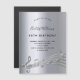 A trendy, modern 50th birthday party magnet invitation card and a save the date reminder. A faux silver metallic looking background, with music notes, black coloured letters. Personalize and add a name and party information. For both him and her.
