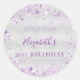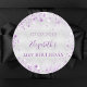 Birthday silver purple glitter dust name date classic round sticker