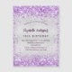 For an elegant 18th (or any age) birthday party. A faux silver looking background. Decorated with purple, violet faux glitter, sparkles. Personalize and add a name and party details. The name is written with a hand lettered style script