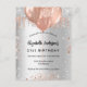 For an elegant 21st (or any age) birthday. A faux silver looking background. Decorated with rose gold and faux silver glitter drips, paint dripping look and balloons. Personalize and add a name, age 21 and party details. The name is written with a hand lettered style script