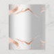 A faux silver looking background. Decorated with rose gold mable veins. Personalize and add a name, age and party details. The name is written with a hand lettered style script.