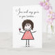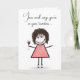 Cute stick girl figure with kinky hair, sneakers, gingham dress, and pearl necklace and holding a glass of red wine for getting older birthday humour.