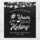 Celebrate any year birthday with these personalized black and white wine and beverage label featuring a calligraphy script typography title design # YEARS IN THE MAKING that incorporates their birth year within the design, the editable title HAPPY BIRTHDAY and name and date or other custom text with a border of string lights. Contact the designer via Zazzle Chat or makeitaboutyoustore@gmail.com if you'd like this design modified, in another colour, on another product or would like coordinating items.