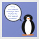 Here, Ms. Penguin models her birthday suit on a window cling. She looks neat and clean and ready for any event or celebration. Her talk bubble lets you personalize by adding text to make her say whatever you like that is fit to print. You can celebrate any holiday or occasion. Remember, January 20th is Penguin Awareness Day. April 25th is World Penguin Day. Change the background colour, font, and text colour by using the "edit design" tool.